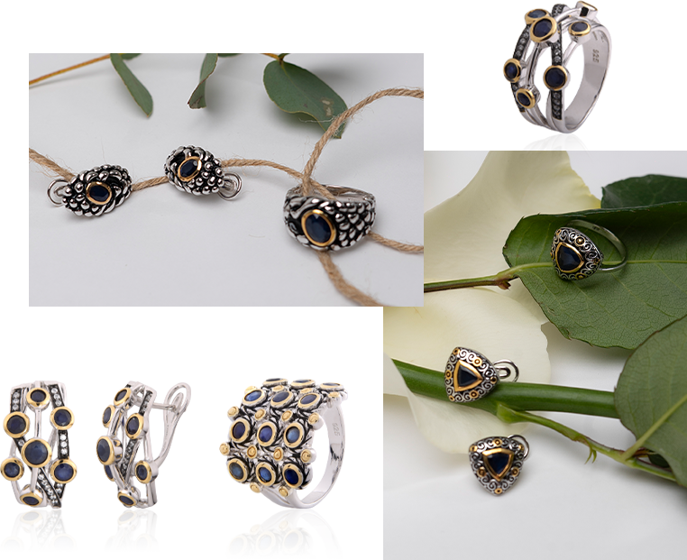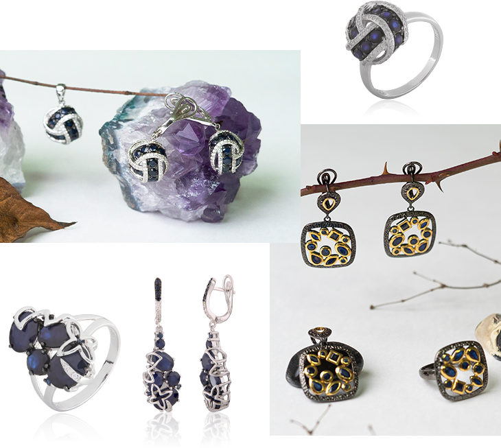 Яркие серебряные украшения с природными сапфирами. Эффектный этнический дизайн воплотился в колоритном рисунке, созданном искусной рукой настоящего мастера